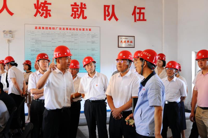 2018年7月20日,營口市老邊區人大常委會主任周立東,副主任孫朝林、呂光波、張天暉,副區長趙洪生、張靜賢,及區政府辦、安監局的主要負責同志在嘉晨集團總裁趙松一的陪同下,來到營鋼公司煉鐵廠對生產安全情況進行視察調研。