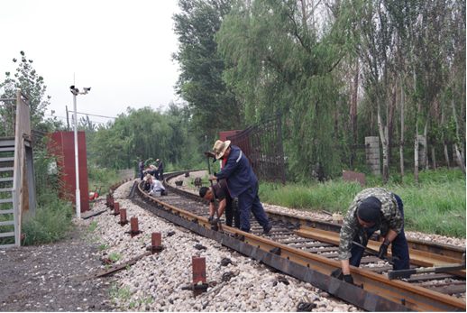 鐵路專線全長1730米,全部維修、維護工作都由工務組十幾名工人完成,此次維修工作,不僅要保證列車通行安全,而且還要節(jié)約成本,要讓每根鋼軌、每個螺絲釘都發(fā)揮它有效作用。一條鋼軌重達1噸,更換工作全部由人工完成,而此次更換的鋼軌,曲徑彎度特別大,更換難度可想而知,在此困難情況下,工人們表現(xiàn)出極大耐心、細心,用他們嫻熟的技藝,提前半小時出色地完成更換搶修工作,保證了列車正常通行。